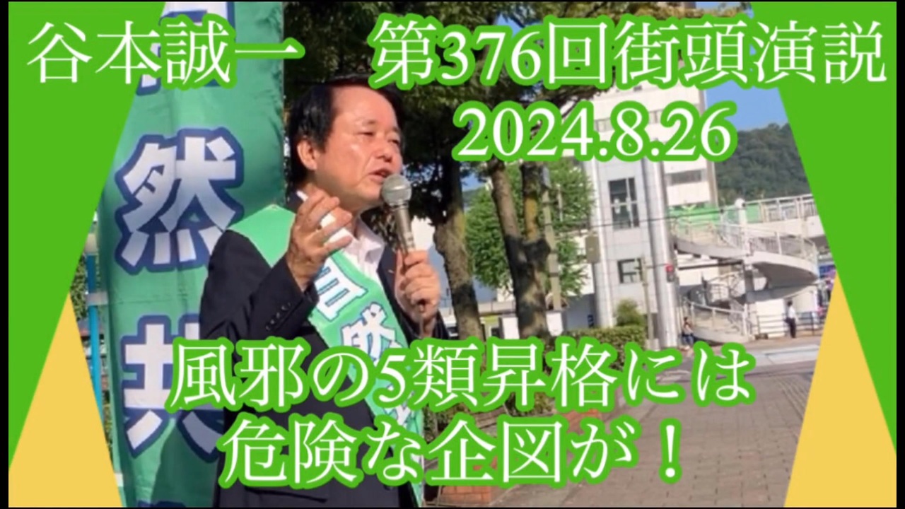 - 第376回街頭演説 風邪の5類昇格には危険な企図が! 2024.8.26